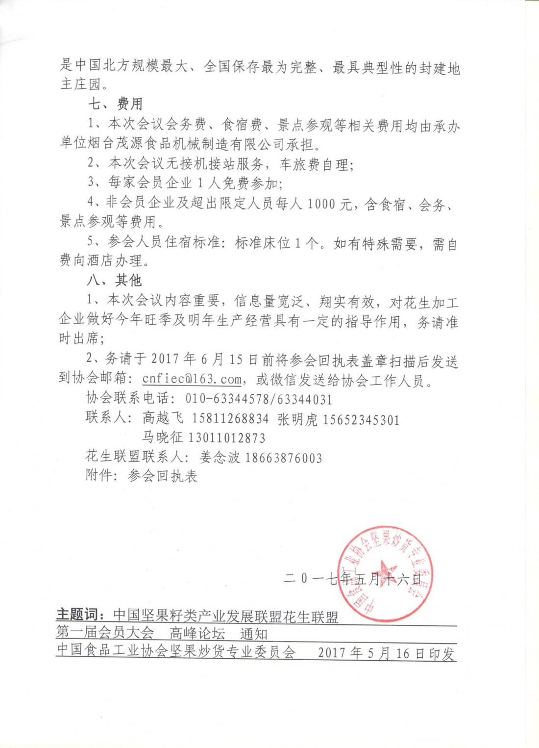 1、請各參會代表務必將回執表的每一項填寫齊全,于2017615日前,蓋章掃描后發送到郵箱:cnfiec@163.com,或微信發送給工作人員,以便做好各項準備工作;
