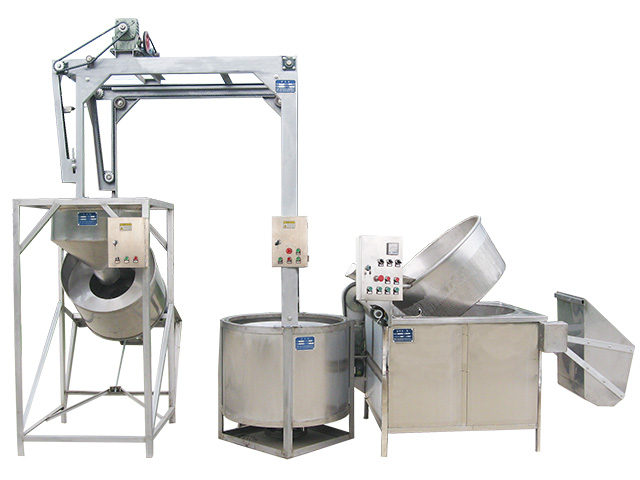 簡易油炸生產(chǎn)線Ⅱ型由油炸機(jī)、脫油機(jī)、提升機(jī)和拌料機(jī)組成。其中各部分均可單獨作業(yè)的。炸機(jī)可以將進(jìn)入炸鍋的原料從定時炸制,提鍋淋油,提升倒入脫油筒脫油到輸送出去一氣合成。溫度、油炸時間、脫油時間全部由PC機(jī)自動控制;炸制效果穩(wěn)定均勻性好,能有效地控制食品含油量。加工出的產(chǎn)品,香脆可口、味道純正,是生產(chǎn)油炸花生、蠶豆等堅果類食品的設(shè)備。